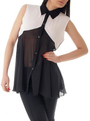 Zmysłowa, kontrastowa, rozszerzana koszula / bluzka z kołnierzykiem, zapinana na guziki.W komplecie tasiemka, która umożliwia stylizację wiązaną w pasie. Skład: poliester